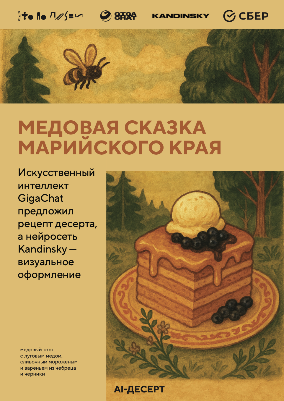 Также на маркете мы будем в коллаборации со Сбером: совместно с искусственным интеллектом Сбербанка к основному сету был разработан уникальный десерт — медовик, в котором классика получила современное, технологичное переосмысление.
